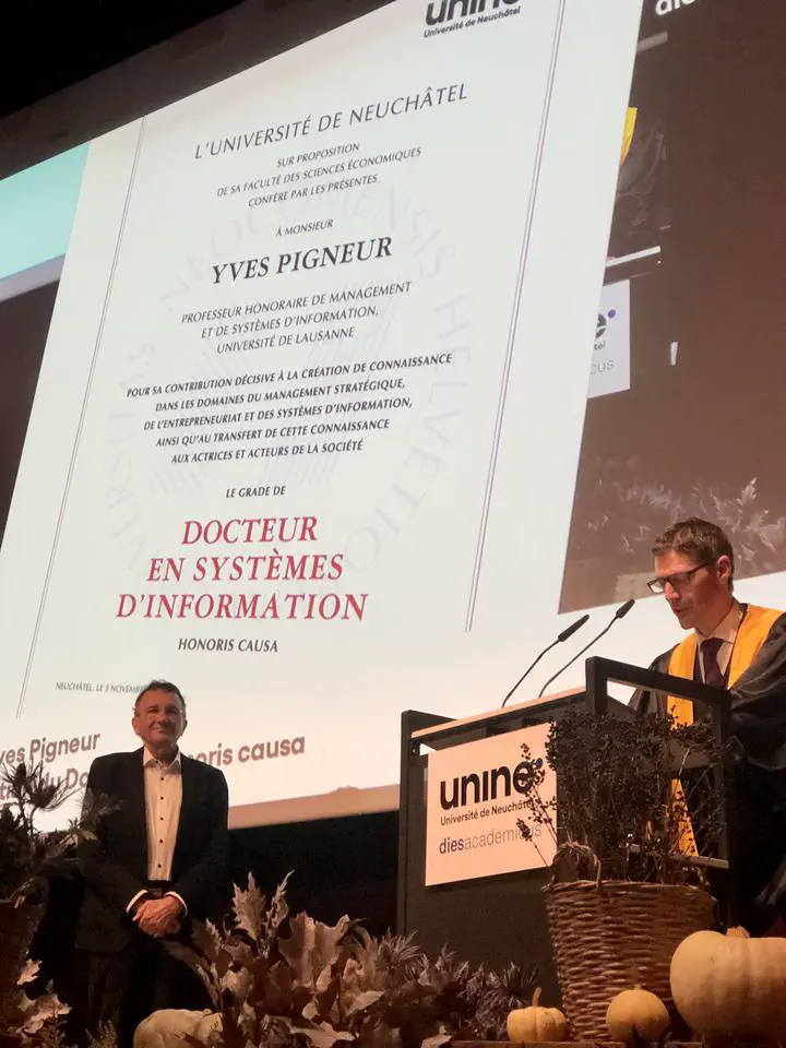 En automne 2022, Yves Pigneur, un ancien de la faculté (à l’époque, encore institut) d’Informatique a reçu plusieurs distinctions avec un Doctorat honoris causa de l’Université/HEC Montréal en septembre, un Doctorat honoris causa de l’Université de Neuchâtel en novembre et l’Impact Award de l’Association for Information Systems (AIS) avec Alex Osterwalder en décembre 2022.